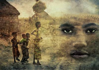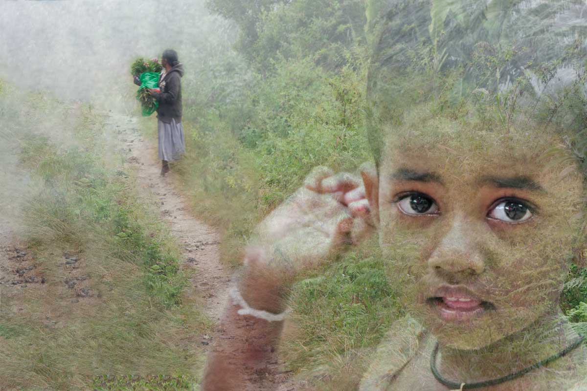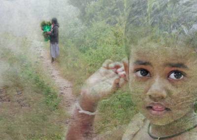 Cette série d'images explore l'univers intérieur des jeunes filles confrontées au patriarcat et aux traditions. Par un jeu de superpositions, les visages d'enfants se fondent dans des paysages arides et des scènes de vie rurale, créant une fusion poignante entre leur identité et leur environnement. Le regard intense de chaque enfant nous interpelle, révélant une lutte silencieuse, une résignation, mais aussi un espoir subtil d'une vie libre.